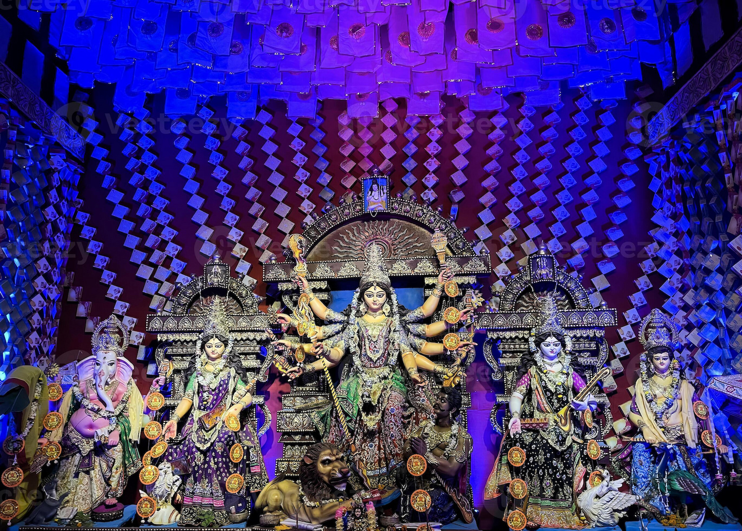 For Bengalis, Durga Puja in Bengal is the soul of Sharad Navratri. While the rest of India worships for nine nights, Bengal welcomes Durga as a daughter returning home from Kailash to her parents. The air fills with the sound of dhaak drums, the fragrance of shiuli flowers, and the sight of towering idols of Maa Durga with her children—Lakshmi, Saraswati, Kartik, and Ganesha.